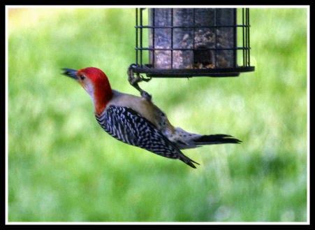 Ruby-throated hummingbird... perched on the windshield wiper of the rig... waiting for someone to stop at HIS feeder so he can attack.