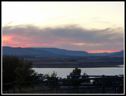Looking out from the front of our rig...  a late evening photo of the clouds and lake as the sun sets.
